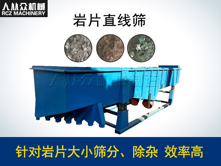 巖片是混雜巖的重要組成部分,它有很多的種類,是涂料生產(chǎn)廠家所必須的一種原料。根據(jù)不同的涂料,需要將巖片進(jìn)行等級(jí)的篩分,這時(shí),巖片直線篩(直線振動(dòng)篩)就是必不可少的。