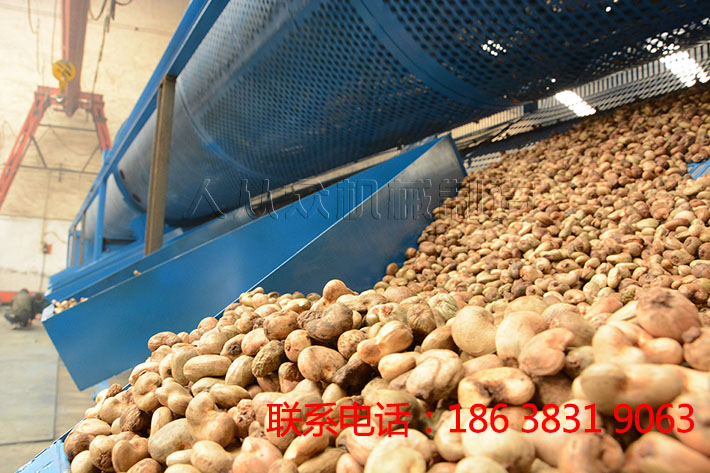 腰果篩分機(jī)/干果篩分機(jī)替代人工進(jìn)行大小的分揀,目前我司生產(chǎn)的腰果滾筒篩長度可達(dá)12米,篩分量大、效果佳。