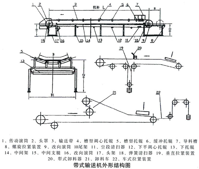 TD75型通用固定帶式輸送機(jī)的結(jié)構(gòu):