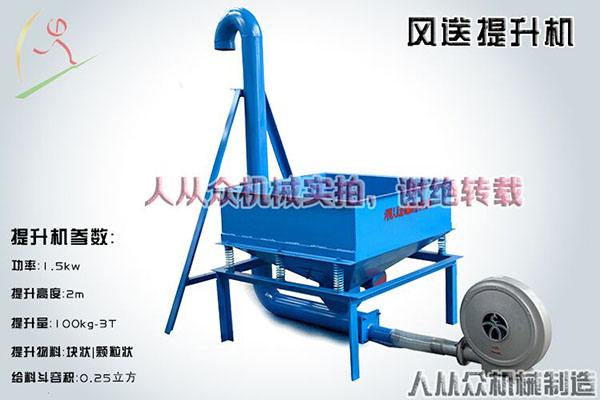 風(fēng)力提升機(jī)由鼓風(fēng)機(jī)、料斗、振動(dòng)電機(jī)、輸送管道和其他裝置組成。電機(jī)作用于料斗,可以使物料勻速的下落,預(yù)防起拱和堵塞的現(xiàn)象。使用時(shí)先插電啟動(dòng)振動(dòng)電機(jī)和鼓風(fēng)機(jī),運(yùn)轉(zhuǎn)穩(wěn)定后向料斗內(nèi)倒入物料,經(jīng)過電機(jī)的振動(dòng),物料下落至運(yùn)輸管道,遇到鼓風(fēng)機(jī)吹來的強(qiáng)風(fēng),被吹至管道頂部隨著出料口均勻的以螺旋形式輸出,一氣呵成。
