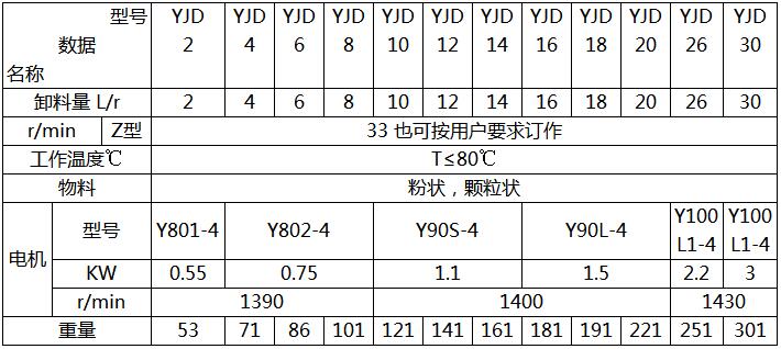 YJD卸料器的技術(shù)參數(shù):