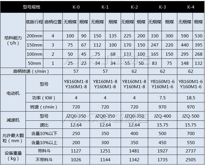 K型往復式給料機型號,可根據(jù)給料量的大小來劃分,具體有:K-0、K-1、K-2、K-3、K-4等幾種型號。