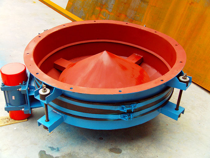 DZL振動料斗給料機在工作時,安裝在振動料斗外側(cè)的振動電機是振動料斗的激振源,電機啟動后,產(chǎn)生慣性激振力,使振動料斗內(nèi)的球面活化器產(chǎn)生強烈的水平振動。球面活化器將水平方向的激振力分解為沿球面法線方向和切線方向的分力。法線方向沿放射方向傳遞到物料深處,從而破壞了料倉內(nèi)的垂直料拱,促使活化器上部的物料從中心向四周快速移動,再沿倉壁下滑,實現(xiàn)物料的整體流動,從出料口均勻排出。