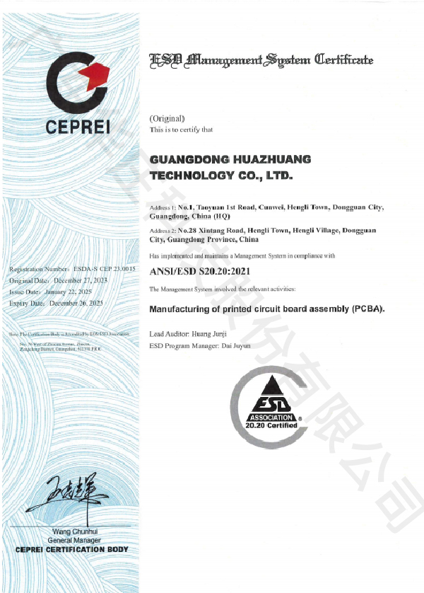 ESD 廣東華莊(新老廠)PCBA 印刷線路板的組裝